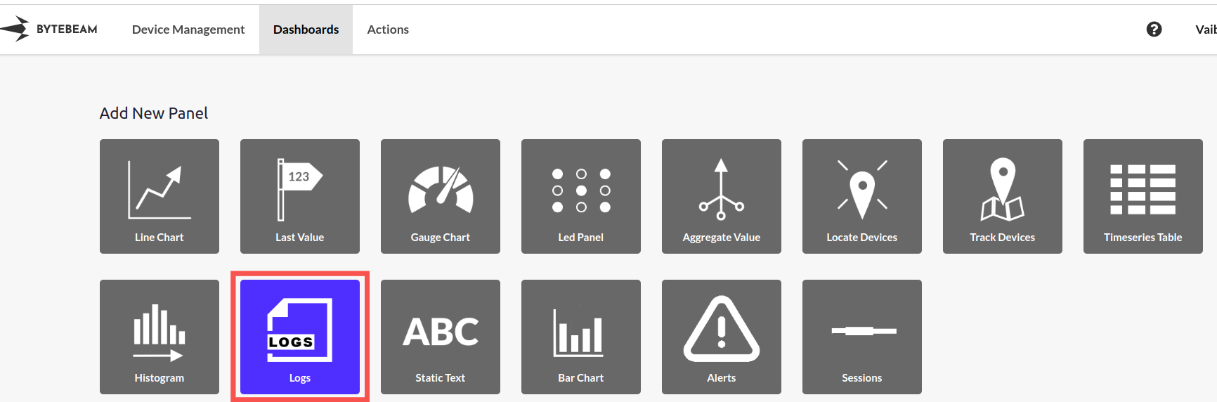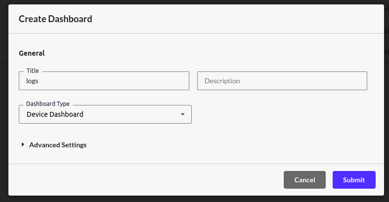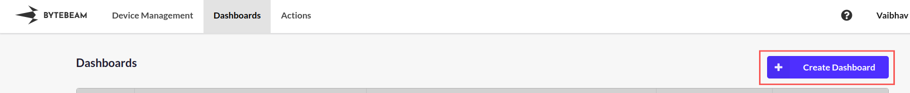 Go to the “Dashboards” section of Bytebeam Cloud and select “Create Dashboard”