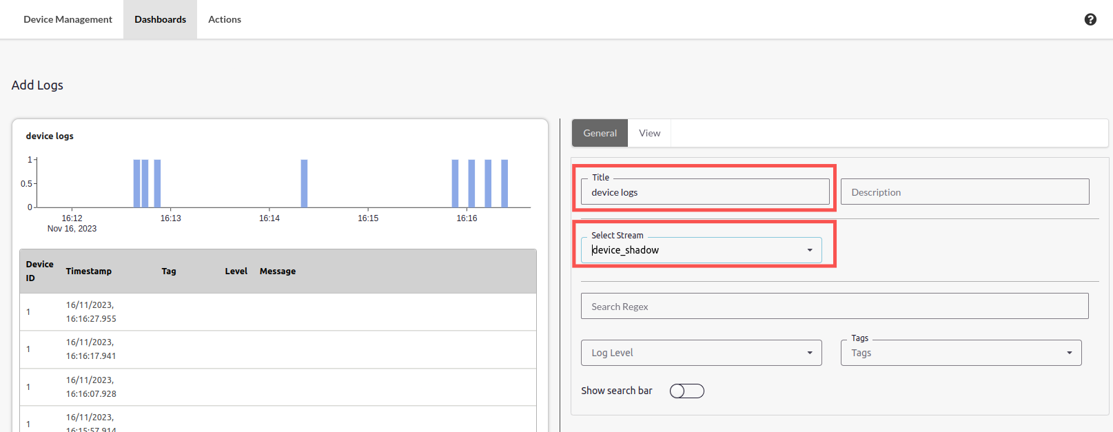 Create logs dashboard